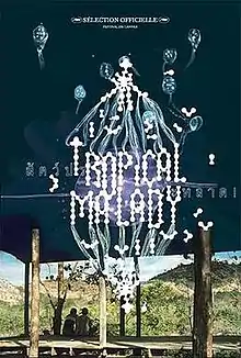 Tropical Malady (RTGS: Satpralat; lit. "monster") is a 2004 Thai romantic psychological drama art film written and directed by Apichatpong Weerasethakul. The film has a bifurcated structure; it is separated into two segments – the first is a romance between two men, and the second a mysterious tale about a soldier lost in the woods, bedeviled by the spirit of a shaman.