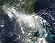 Tropical Storm Bonnie was a small and rather weak tropical storm that brought squally weather to the northern Caribbean Sea and Gulf Coast of the United States in July 2010. The third tropical cyclone and second named storm of the 2010 Atlantic hurricane season, Bonnie developed from a tropical wave over the Bahamas on July 22. It strengthened to a tropical storm while crossing the islands, and made landfall on the southeastern coast of Florida the following day. Inland, Bonnie weakened to a tropical depression before entering the Gulf of Mexico, where its surface circulation dissipated on July 24. The remnants of the storm moved ashore between Louisiana and Mississippi early on July 25, prompting severe thunderstorm and tornado warnings in the area.