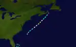On September 1, a southwest-northeast oriented stationary front was situated offshore the East Coast of the United States from east of The Carolinas to the south of Nova Scotia.[3] By the following day, the front spawned a tropical depression about 225 mi (360 km) southeast of Cape Hatteras, North Carolina.[3][4] The depression moved northeastward and detached from the stationary front.[3] Around 06:00 UTC on September 2, it strengthened into a tropical storm. The system intensified into a hurricane early on the following day. Later on September 3, the storm strengthened into a Category 2 hurricane and peaked with maximum sustained winds of 100 mph (155 km/h) and a minimum barometric pressure of 977 mbar (28.9 inHg). Thereafter, the storm weakened to a Category 1 and a tropical storm on September 4, before becoming extratropical near Cape Breton Island later that day.[4] This system was first identified as a hurricane by Ivan Tannehill in 1938.[3]