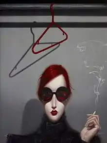 Troy Brooks (born September 23, 1972) is a Canadian painter.[2] His art is narrative film noir style portraits of elongated female protagonists which are part of the contemporary Pop Surrealism[3] scene. The Globe and Mail wrote in a 2018 review titled "A Road Trip into Our Psyches"; "a typical Brooks she-devil subject has an elongated face and body, is dead white, dressed elaborately, surrounded by weird animal familiars and/or horrific accidents, and is perhaps transgendered."[4]