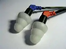 Generic or custom-fitting ear canal plugs are made from silicone rubber, elastomer, or foam. Such plugs in lower-end devices may be interchangeable, which increases the risk of them falling off and getting lodged in the ear canal. Custom in-ear headphones use castings of the ear canal to create custom-molded plugs that provide added comfort and noise isolation.[22]