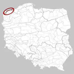 The Trzebiatowski Coast is a Polish mesoregion located on the Bay of Pomerania. It is 60 kilometres (37 mi) long and stretches from the Dziwna to Kołobrzeg. It has an area of 290 square kilometres (110 sq mi) and its shore is roughly 60 kilometres (37 mi) long.