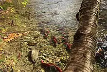 It is known for being one of the largest sockeye salmon runs in North America. A dominant year occurs every four years when millions of sockeye salmon spawn in the Adams River. The last dominant run was in October 2014, the next in 2018, with "sub-dominant" runs in 2007 and 2011. The Adams River Salmon Society coordinates the celebration known as the "Salute to the Sockeye" during the dominant years.[2]