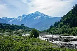 ![]() Mount Tetnuldi and Mulkhra River in the neighborhood of Tsaneri Glacier | |