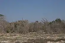East from the lake basin, at the foot of the Mahafaly Plateau, is the second zone; dry forest on sandy soils [9] derived from sand deposits of recent and Quaternary origin.[17] The vegetation is made up mostly of short statured trees, shrubs and open unvegetated areas. Some underground water drains under the Mahafaly Plateau, and comes to the surface at the foot of the plateau in caves or as seeps and springs. These areas of ephemeral or permanent water sources support larger fruit trees (e.g. Ficus polita, Tamarindus indica, Salvadoria angustifolia),[9] add greatly to the biodiversity of the zone and are usually found near the border of the third zone, the limestone Mahafaly Plateau.[9]