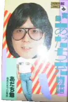 Tsutomu Adachi (あだち 勉 or 安達 勉, Adachi Tsutomu, August 1, 1947 — June 18, 2004) was a Japanese manga artist born in Isesaki City, Gunma Prefecture, Japan,[1] and the older brother of Mitsuru Adachi.[2] Tsutomu was an assistant to Fujio Akatsuka, and was known as one of the "Four Protegés of Akatsuka". According to his younger brother, his definitive works include Jitsuroku Adachi Mitsuru Monogatari, Nigun no Hoshi Hanpa-kun (a gag comic serialized in the educational magazine Jūichi Course, published by Gakken) and Tamagawa-kun.