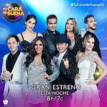 The first season of Tu cara me suena premiered on Univision on October 4, 2020.[1] The series is the American Spanish-language version of the Endemol format Your Face Sounds Familiar. This season features eight celebrities that compete in a song and dance number while impersonating iconic singers. The season is hosted by Ana Brenda Contreras and Rafael Araneda. The judging panel consists of Angélica Vale, Jesús Navarro, Kany García, and Charytín Goyco.[2]