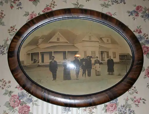 The House was modeled after one found in a magazine picture or catalog fancied by Texana Tubbs. As the house began to take shape in framing, Uncle Gus and Aunt Lizzie expressed a desire to live there also, so they helped with the addition on the North side of a smaller quarters for their abode. The construction utilizes pier and beam Queen Anne Styling, from the end of the Victorian Era. It has 1':1' pitch roofs, numerous cupolas, "fish scaling" gables with "Gingerbread" scroll work, and extensive curved and squared porches on front and a squared porch on back.