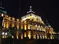 Facing Plaza Independencia, the city's central square, the building remains one of the most architecturally significant in the region. Its grandiose exterior is matched by an ornate interior, which is probably best known for its salón blanco ("white room"). Used historically for official ceremonies, the white room features spiderweb chandeliers and ceiling panels decorated by the Spanish artist, Julio Vila y Prades (recently restored by local sculptor Santos Legname).[1]