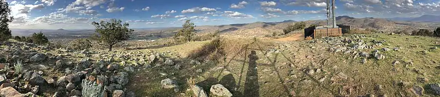 Tuggeranong Hill stands 855 metres (2800 feet) above sea level.[1]