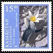 Tulipa regelii, the plicate tulip or Regel's tulip, is a species of tulip native to southeast Kazakhstan.[2] Rare, growing only in certain dry, rocky areas in the northern foothills of the Tian Shan range, it is a very distinctive species with bizarre plicate leaves, usually only one, occasionally two.[3][4] The species was first formally named by Russian botanist and geographer Andrej Nikolaevich Krasnov. It flowers in April.[5]