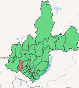 Tulunsky District (Russian: Тулунский райо́н) is an administrative district, one of the thirty-three in Irkutsk Oblast, Russia.[1] Municipally, it is incorporated as Tulunsky Municipal District.[7] The area of the district is 13,561 square kilometers (5,236 sq mi).[3] Its administrative center is the town of Tulun[2] (which is not administratively a part of the district).[1] Population: 27,285 (2010 Census);[4] 29,495 (2002 Census);[9] 32,657 (1989 Census).[10]
