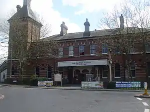 Following closure of the station, the main building was converted into a Beefeater restaurant named "The Old West Station", before being purchased by Herald Inns and Bars which operate it under the same name as a pub-cum-restaurant. It is now a Smith & Western. The building was Grade II listed on 27 March 1986.[23] The former goods yard and stabling sidings are lost under a Sainsbury's supermarket and a Homebase, and the trackbed was made into a car park and the frontage to the supermarket. An agreed corridor was left alongside Linden Park Road to enable any reinstated line to run through the site and a formal agreement was concluded between Tunbridge Wells Borough Council and Lord Sainsbury whereby the company agreed that, if required, they will remove at their own cost any buildings obstructing the path of the railway.[4] In the mid-1990s, a toilet block was constructed on the corridor, but this could be demolished in accordance with the terms of the agreement.[24]