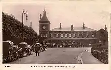 In 1923 following the grouping ordered by the Railways Act 1921, the station passed into the ownership of the Southern Railway (SR). The SR added the suffix "West" to the station's name on 22 August 1923, in order to distinguish it from the other Tunbridge Wells station, which was named "Central".[16] This period saw the station become very popular with cross-country services with over 100 trains passing each day.[12] From Groombridge to Tunbridge Wells West alone there were 83 workings, with trains proceeding to three destinations - Three Bridges, Brighton via the Oxted Line and Eastbourne via the Cuckoo Line. The spur saw little use by 1925 - four daily workings to Brighton and two to Uckfield.[17]