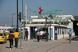 Tunis Metro (light rail) routes 1 and 4, also managed by Transtu, terminate nearby and provide services to the city centre, the main railway station, Tunis Gare Centrale, and beyond. Buses from the station serve destinations including Tunis–Carthage International Airport and the Bardo National Museum.[1]
