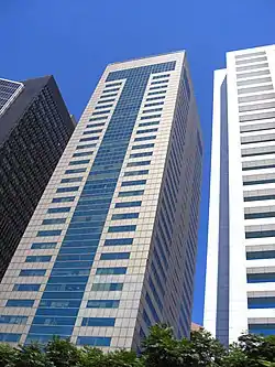 The Tuntex Tower (Chinese: 敦南東帝士大樓) is a skyscraper office building in Daan District, Taipei, Taiwan. The height of building is 143 m (469 ft), with a floor area of 49,884.86 m2 (536,956.2 sq ft), and it comprises 38 floors above ground, as well as four basement levels.[1] The tower was completed in 1990 and was designed by TMA Architects & Associates. The exterior glass façade of the building forms a pattern to represent the first letter "T" of the Tuntex Group.[2]