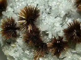 | Crystal habit | Fan-shaped aggregates, rosettes or fibers |
