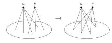 - If are vertices with and non-adjacent but adjacent, then replace both and with copies of .
