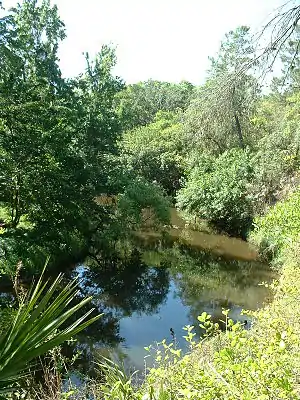 The Turkey Creek Sanctuary is a small nature reserve in the city of Palm Bay in Brevard County, Florida, and incorporates both salty hammock and sand pine ridge habitats. It has 1.85 miles (3 km) of boardwalk paths and 1.5 miles (2.4 km) of jogging trails through native forest to Turkey Creek, an excellent site for seeing birds, turtles, manatees, alligators as well as other local wildlife.[1] The creek is an important breeding ground for both salt and fresh water fish and is accessible via a canoe deck. The Sanctuary is part of the East Florida section of the Great Florida Birding Trail.[2]