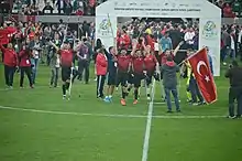 Turkey national amputee football team members enjoying after winning the 2017 European Amputee Football Championship final match Turkey vs England at Vodafone Park in Istanbul, Turkey.
