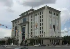 The Democratic Left Party (DSP), having declined to enter an electoral alliance with the CHP, made visits to trade unions and set its target to surpass the 10% election threshold.[101] A DSP candidate in Isparta caused media attention after he posed with a glass of rakı in a campaign poster, arguing that it was a protest against the declining values of Mustafa Kemal Atatürk.[102] The party's leader Masum Türker claimed that the abolition of the Presidency of Religious Affairs would cause division in Turkey and also predicted that an early election would occur after 7 June since no party would win a majority.[103][104]