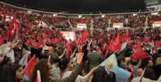 The government has consistently accused the CHP of allegedly maintaining links with exiled cleric Fethullah Gülen and his Cemaat Movement. A former ally of the AKP and widely known for his influence in the Turkish judiciary, Gülen had allegedly sought to increase influence over the CHP after falling out with Erdoğan in 2013. The difference between Gülen's Islamist and the CHP's secular ideology resulted in inner-party controversy and led to the resignation of İzmir MP Birgül Ayman Güler in January 2015.[73] The party voiced support Bank Asya, a pro-Gülen bank that the AKP government attempted to shut down in 2014 and also applied to visit the head of the pro-Gülen Samanyolu TV in Silivri Prison.[74] The CHP planned 50 electoral rallies throughout Turkey in what Kılıçdaroğlu styled as a 'meeting marathon' (Miting maratonu). During visits to different provinces, Kılıçdaroğlu is also due to make unplanned visits to town centres and other public places to meet with voters directly. Special measures were taken for people with disabilities, with the party accompanying its televised electoral rallies with sign language.[75] The party's inaugural electoral rally was held on 11 April in the Kartal district of İstanbul. The rally was styled as the 'National Applause rally' (Milletçe Alkışlıyoruz mitingi). During the rally, Kılıçdaroğlu appeared to unveil a new slogan, 'Do not be afraid, do not give up, do not cower' (Korkmayın, yılmayın, sinmeyin).[76] The CHP has also targeted to win votes from the centre-right.[77][78]