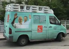 Having formed an electoral alliance under the name National Alliance (Millî İttifak), the Felicity Party (SP) and the Great Union Party (BBP) campaigned on a religious platform. SP leader Mustafa Kamalak and BBP leader Mustafa Destici held joint electoral rallies. It was reported on 29 May that an Alliance electoral rally at Bartın had been cancelled due to no turnout, though the Alliance released a statement stating that there had been no rally planned in Bartın on that day.[105] The Alliance became the first ever party or alliance in Turkey to release a 'vocal manifesto' online.[106] Arguing for a return to Necmettin Erbakan's ideology of National View (Millî Görüş), the Alliance blamed the AKP for having a hand in the growing unrest in the Middle East and criticised CHP leader Kemal Kılıçdaroğlu for accusing the Alliance of being 'enemies of Islam'.[107] An Alliance candidate from Sivas claimed that they would complain to the Constitutional Court should they not surpass the 10% threshold.[108]