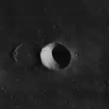 Turner is a small lunar impact crater that lies in the Mare Insularum, near the Moon's equator. The crater was named after British astronomer Herbert Hall Turner.[1] It is located to the southeast of the crater Gambart. Turner is a circular, cone-shaped crater with inner walls that slope down to the midpoint. A similar-sized ghost crater is attached to the western rim, its interior floor submerged by lava and the surviving rim broken in the southwest.