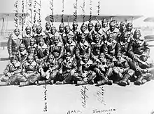 The first class (42-C), which included student officer Captain Benjamin O. Davis, Jr., began training on July 19, 1941. who served as Commandant of Cadets. Twelve cadets served with him under Captain Noel F. Parrish, a white officer, and 2nd Lieutenant Harold C. Magoon, another white officer, who served as the adjutant. The other cadets were John C. Anderson, Jr., Charles D. Brown, Theodore E. Brown, Marion A. Carter, Lemuel R. Custis, Charles H. DeBow, Jr., Frederick H. Moore, Ulysses S. Pannell, George S. Roberts, Mac Ross, William H. Slade, and Roderick C. Williams. Only five of these cadets completed the flying training at Tuskegee, in March 1942.[2]
