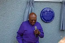 Tutu was still living there in October 2011.[1] A blue plaque was installed on the Tutu house in 2011 as part of the Johannesburg heritage trail by what was then called the Simon van de Stel Foundation.[1] Vilakazi Street attracts thousands of tourists since Mandela House was opened to the public in 1997, quickly becoming a top-twenty tourist destination.[4] Tutu House is not open to the public, but the street does have several shops and restaurants.[5] [6]