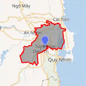 Tuy Phước is a rural district (huyện) of Bình Định province in the South Central Coast region of Vietnam. The district capital lies at Tuy Phước.[2] The district has 13 administrative units, including two towns, Diêu Trì and Tuy Phước, and 11 communes: Phước Thắng, Phước Hưng, Phước Hoà, Phước Quang, Phước Sơn, Phước Hiệp, Phước Lộc, Phước Thuận, Phước Nghĩa, Phước An and Phước Thành.