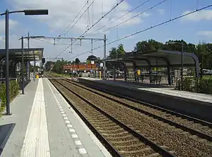 Twello is a railway station serving the village Twello, Netherlands. The original station was opened in 1887, closed in 1951 and reopened in 2006. It is located on the Apeldoorn–Deventer railway. The train services are operated by Nederlandse Spoorwegen.