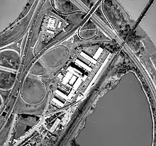 The motel permanently closed for business on December 18, 1988.[5] After its demolition in 1990, the Arlington County government rejected a 1991 proposal for office redevelopment, then in 1994 approved an office-and-hotel plan that was never built. In 1993, the Department of the Army attempted to obtain the land for a proposed military history museum.[6] In 2005 the County Board refused to grant permission for two seven-story office buildings on the site (and an adjacent parcel at 355 Old Jefferson Davis Memorial Highway). Instead, the County organized an exchange of parcels that shifted the private development closer to Crystal City and secured the Twin Bridges property for public uses more in accord with its visual prominence and sensitive location.[2][7] The site has been developed as a public recreation area as part of Arlington County's Long Bridge Park.[8]