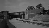 At this point, the option of going over or through Twyford Down had not been considered, and the alignment of the proposed six-lane M3 motorway (three lines in each direction) was to run through the Itchen valley roughly west of the existing four-lane bypass.[21] This would also require the realignment of the Itchen Navigation into the water meadows.[21] However, there would be further screening of the motorway and pedestrian access to St. Catherine's Hill from the city. These proposals had gone through two public inquiries in 1971 and 1976, respectively. The first in 1971, the line order inquiry, had considered the proposed route of the motorway;[22] and in 1973 the government approved this route.[21] The second inquiry, in 1976, was to consider both the stopping up of side roads and the compulsory purchase orders for the land needed to build the motorway.[22] The latter inquiry in particular had drawn significant objection from protesters, including masters from Winchester College.[23] Morgan-Giles argued in Parliament to support the scheme, pointing out that Winchester and the Down had been cut off since construction of the old bypass anyway, and growth of Southampton Docks meant that improved links from London and the Midlands would become increasingly essential.[19] This schema was eventually rejected due to intensifying local pollution and disturbance.[24]