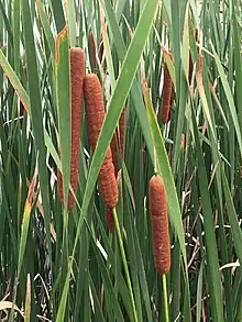 Typha × glauca is a hybrid species of plant originating as a cross between T. angustifolia and T. latifolia. It shows invasive behavior in the Midwestern United States [1]