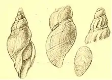 | Original drawing of a shell with protoconch and operculum of Typhlodaphne purissima | |