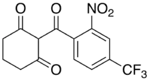 Nitisinone was first used to clinically treat tyrosinemia type I in 1991. Nitisinone was approved by the European Medicine Agency (EMA) under exceptional circumstances in 2005. Originally, nitisinone was developed as a weed-killer by Zeneca Agrochemicals. It was epidemiologically observed that the growth of plants and weeds was inhibited under the bottlebrush plant (Callistemon citrinus). It became clear that neither the shade nor the litterfall of these plants was responsible for the suppression of plant and weed growth. Rather, a substance – which was identified as leptospermone – in the soil under the bottlebrush plant was shown to have bleaching activity on the emerging plants. The allelochemical leptospermone was extracted from the bottlebrush plant and chemically characterized. Leptospermone belongs to the triketone family and inhibits chloroplast development due to a lack of plastoquinone secondary to hepatic 4-hydroxyphenylpyruvate dioxygenase (HPPD) inhibition; thus, it served as a blueprint for the synthesis of nitisinone.[9]