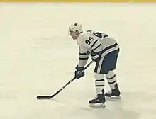 Barrie began the 2016–17 season on the Avalanche's second defensive pairing. On October 15, 2016, in the opening game of the season (a 6–5 Avalanche win over the Dallas Stars), Barrie scored his 12th career NHL game-winning goal to surpass Sandis Ozoliņš for the most game-winning goals by a defenceman in franchise history.[24] With the Avalanche off to a middling start to the season, Barrie continued to lead the offence from the blueline; however, he struggled defensively after he was placed into top-pairing minutes after an injury to top Colorado defenceman Erik Johnson.[25] Barrie made his 300th NHL appearance in a game against the New York Rangers on December 31, 2016.[26] Unable to help the Avalanche avoid their worst season in Denver and a last-place finish in the NHL, Barrie finished the season level with teammate Matt Duchene with a league-worst plus-minus rating of –34.[27] In regressing to 7 goals and 38 points in 74 games, Barrie nonetheless led all Colorado defencemen in each offensive category and finished third among all Colorado skaters in points.