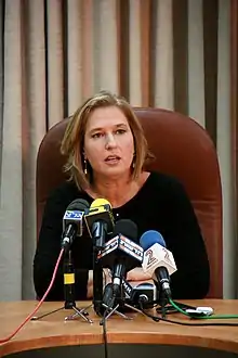 Tziporah Malka "Tzipi" Livni (Hebrew: ציפי (ציפורה) מלכה לבני, pronounced [tsipoˈʁa malˈka ˈtsipi ˈlivni]; born 8 July 1958) is an Israeli politician, diplomat, and lawyer. A former member of the Knesset and leader in the center-left political camp, Livni is a former foreign minister of Israel, vice prime minister, minister of justice, and Leader of the Opposition. She is known for her efforts to resolve the Israeli–Palestinian conflict.