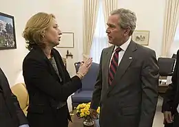 In 2007, she met with Palestinian prime minister, Salam Fayyad, to discuss "improving the lives of the Palestinian people, without compromising Israel's security."[49]