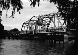 In 1994, the original Lake Monroe Bridge over the St. Johns River near Sanford, which was built in 1933 along with this segment of US 17, was replaced with the current four-lane Bill Benedict Bridge. The swing span of the original bridge has been preserved and now serves as a pier next to the current bridge.[12]
