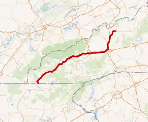 | Madison | | 134.0 | 215.7 | West end of I-26 overlap, north end of US 23 overlap, brief US 23A overlap | ||||