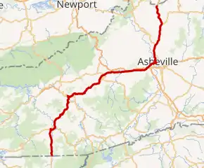 In Asheville, it connects with I-26/I-240 while crossing the French Broad River; it then continues northbound with I-26/US 19/US 70. US 23 stays in concurrency with I-26 to the Tennessee state line. Almost the entire route is four-lane, the exception being between Canton and Candler.