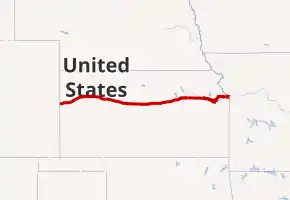 US 40 enters Kansas near the unincorporated community of Weskan. The first sizable town it enters is Sharon Springs, where it intersects K-27. From there it goes northeast to Oakley and follows Eagle Eye Road before merging with I-70 east of town. The two routes remain merged until Topeka, although the prior alignment of US 40, named Old Highway 40, parallels I-70 for most of the way.[1][2] From Ellsworth to Salina, the old alignment of US 40 is signed as K-140.