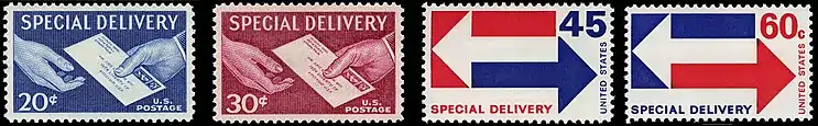 | Wikimedia Commons has media related to Express and special delivery stamps. |