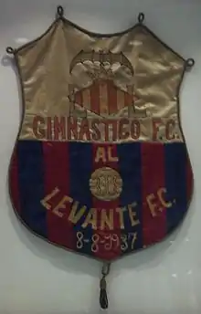 During the Civil War, Levante's ground was destroyed, but the club's squad remained intact. In contrast, Gimnástico had a ground, Estadio de Vallejo, but had lost most of their players. As a result, in 1939 Levante FC and Gimnástico FC merged into Levante Unión Deportiva.[15] Levante UD thus having origin from at least 1909 from both Levante FC and Gimnástico FC. At first being named Unión Deportiva Levante-Gimnástico, then changing it a few years later to Levante Unión Deportiva, with current club colours also dating from this era (the blaugrana, blue-garnet, home colours were originally those of Gimnástico FC, while the black and white away kit, were the colours of Levante FC). Moreover, Levante UD not only inherited their colors from Gimnástico FC but also their nickname, "Granota", the Frogs.[16][17][12][10][18]