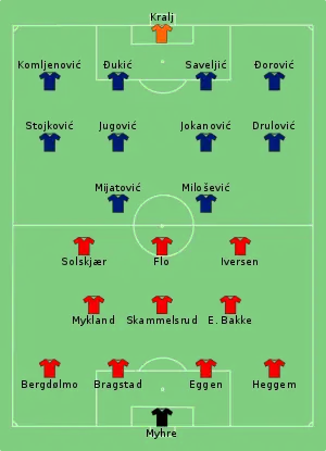 - Head-to-head result: Norway 0–1 FR Yugoslavia.