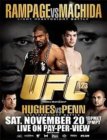 UFC 123: Rampage vs. Machida was a mixed martial arts event held by the Ultimate Fighting Championship on November 20, 2010 at the Palace of Auburn Hills in Auburn Hills, Michigan.[3] It was the first UFC event in the Metro Detroit area since UFC 9.