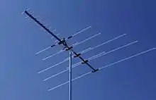 Because the antenna size is based on the wavelength, UHF broadcasting can be received with much smaller antennas than VHF while still having the same gain. For instance, Channel 2 in the North American television frequencies is at 54 MHz, which corresponds to a wavelength of 5.5 m, and thus requires dipole antenna about 2.75 m across. In comparison, the lowest channel in the UHF map, Channel 14, is on 470 MHz, a wavelength of 64 cm, or a dipole length of only 32 cm. A powerful VHF antenna using the log-periodic design might be as long as 3 m, while a UHF Yagi antenna with similar gain is often found placed in front of it, occupying perhaps 1 m. Modern UHF-only antennas often use the bedspring array and are less than a meter on a side.