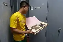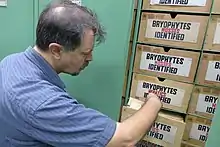 The Mycological Herbarium, with a fungal collection of around 13,000 specimens,[1] traces its roots to the Dr. Gerardo O. Ocfemia (considered as the Father of Philippine Plant Pathology)[16] Memorial Herbarium which was established in the 1960s from extensive fungal collections in the Philippines by iconoclast mycologist Dr. Don R. Reynolds[17] and his students. The herbarium was formally recognized in 1966 and became included in the Index Herbariorum in 1968 as CALP (College of Agriculture, Laguna, Philippines).[18][19]